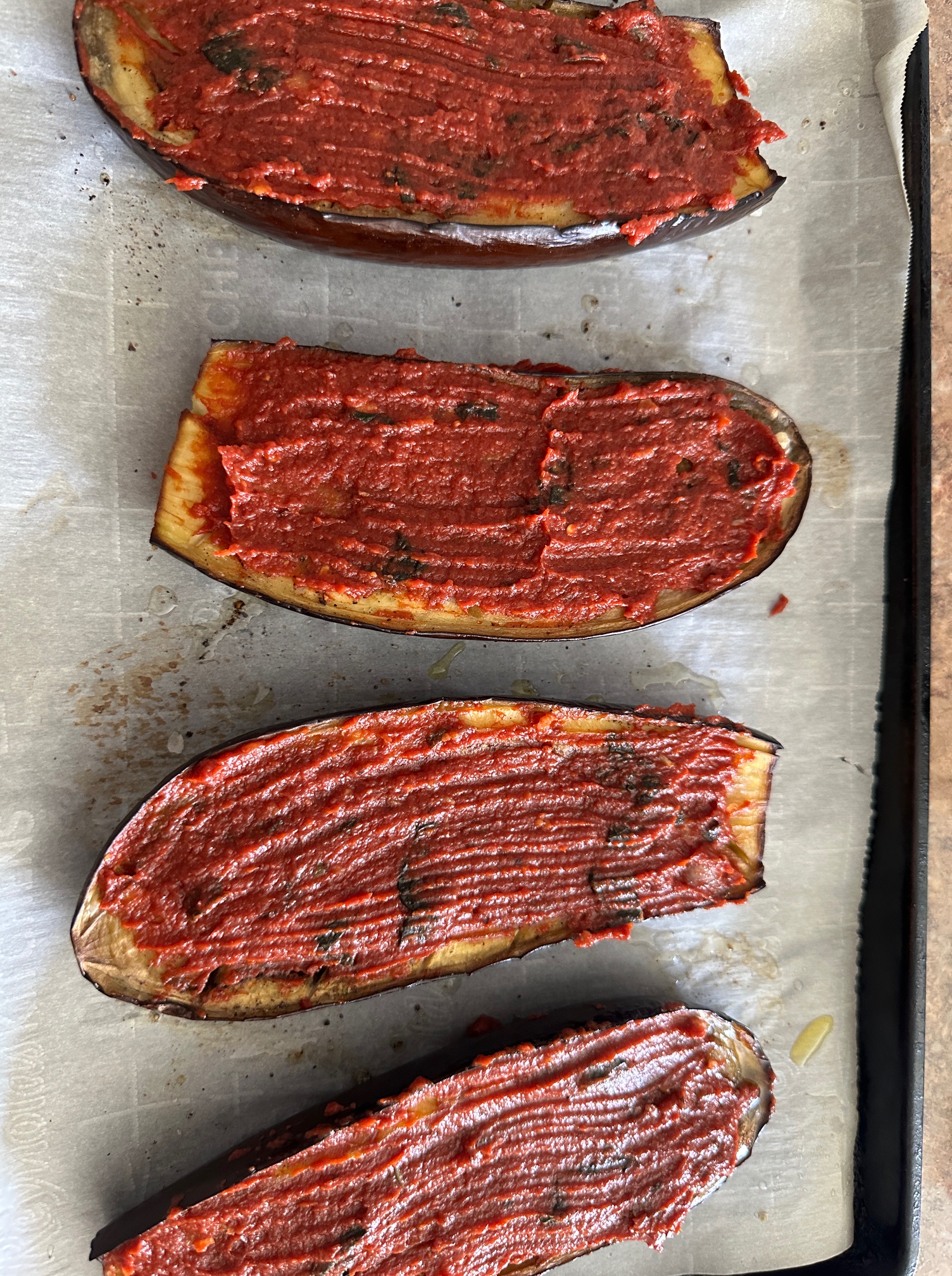 Place the halved tomatoes in a medium size bowl and add the olive oil. Add the breadcrumbs and salt to taste. Mix everything well. Line a baking sheet with parchment paper. Spread the tomato mixture in a single layer on the sheet.
