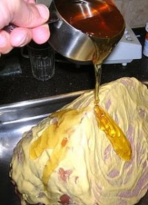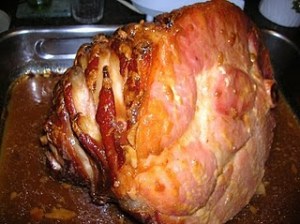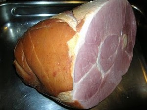 Here is what’s actually going on with this dish. You’re as much cooking it as you are drying the ham. Smoked hams we buy in today’s supermarkets are mostly water. This cooking process drys out the ham so it taste as good as a true Virginia baked ham. There is a difference in what we buy here and what they sell down south. Another little lesson in hams, I always buy the Butt HALF or Shank HALF. Never the Butt PORTION or Shank PORTION. The reason is on the PORTION cut they slice away the center portion of the ham and sell it as ham steaks. And the center of the ham is the best cut. I know, you are getting a smaller ham with the PORTION cut, but believe me, ham never goes to waste. You can dice it and scramble it with eggs in the morning, ham sandwich paradise, let’s not forget Ham Salad. And ham freezes well, just pack the left over in a zip lock bag and it stores for months. I always leave a bag in the fridge and snack on it right out of the refrigerator. Ham never lasts long in my house. And let’s not forget Pea Soup! Yummm.