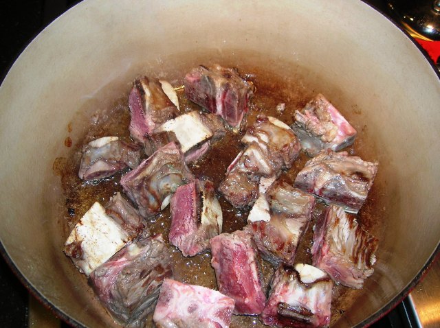 If you are not into soup bones, but I have to tell you, the bones add another whole demension of flavor, you can brown a pound of lean chopped meat in the pot instead.