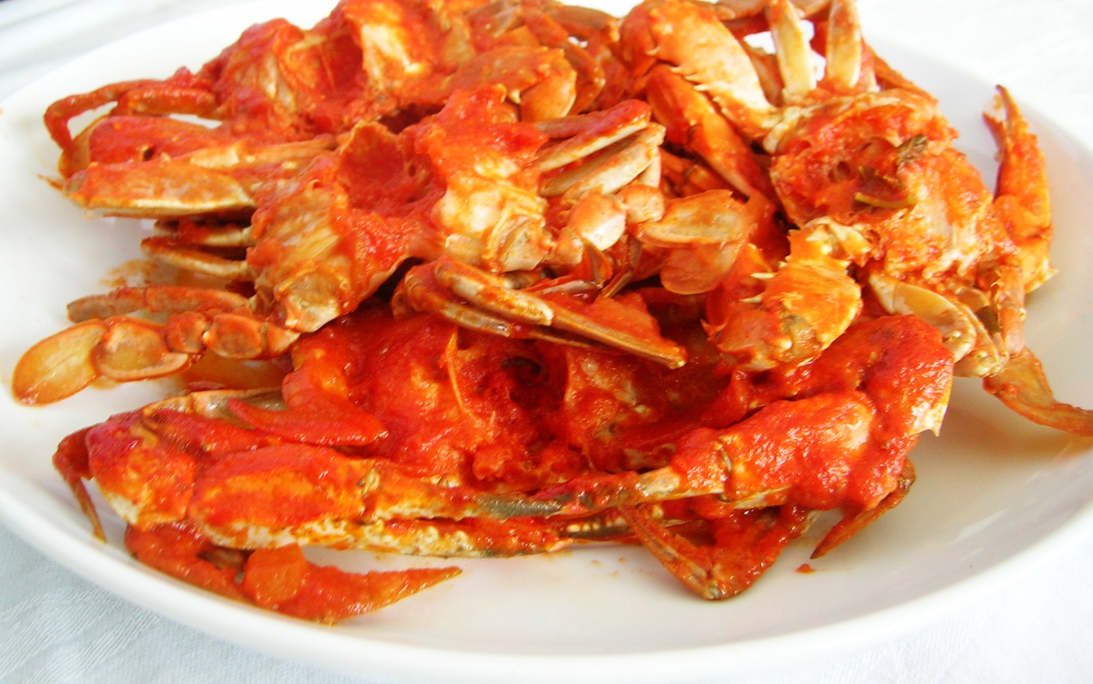 Add the cleaned crabs to the sauce and cook over medium low heat for about 1/2 hour, stirring occasionally.