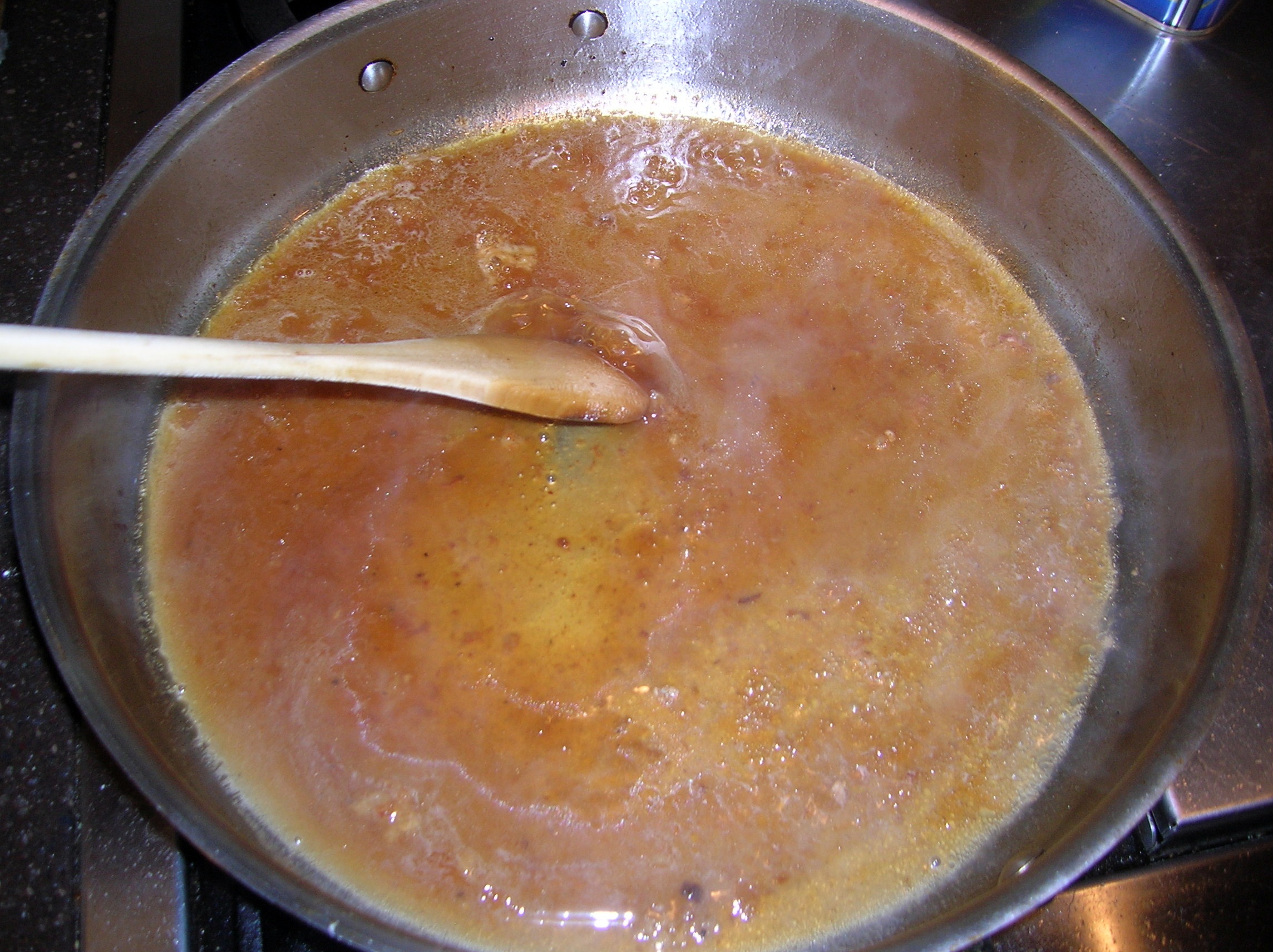 Add the Marsala to the skillet. Then add 1/2 cup beef broth.  Cook, stirring up all the brown bits on the bottom of the pan, until the wine is reduced, about 1 minuet.