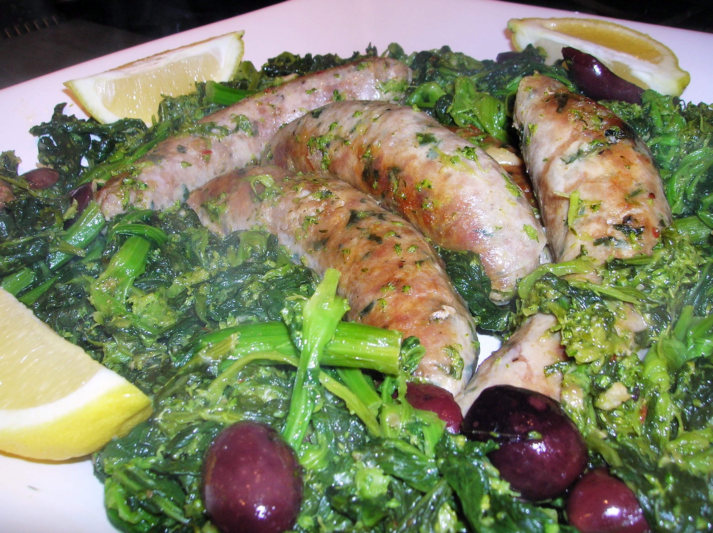 Serve the sausages on a platter with the broccoli rabe and some lemon wedges. Crusty Italian bread is NOT optional!