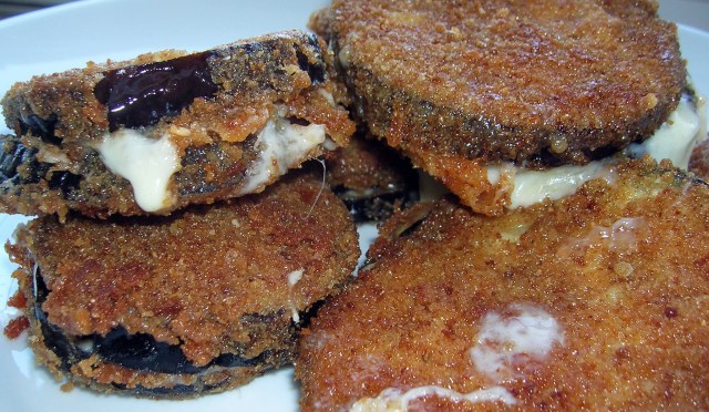 this is the kind of food that i love to eat but hate to cook. breading & frying is so messy, boring tiresome & tedious. i have eaten this & it is wonderful. it’s so good to put this sandwich between 2 slices of italian bread to make another sandwich. yeah, out on the west coast there were tough guys [probably “ex-pats” from brooklyn] who used to say “sangwich”, too. it was a big joke . there’s an italian restaurant here in my city that makes this melanzana heavenly dish. i’m going to get over there this week for a melanzana sangwich hit! your post has motivated me to eat it but not cook it. thanx for the reminder of how good this is! mrw [still love your blog!]
