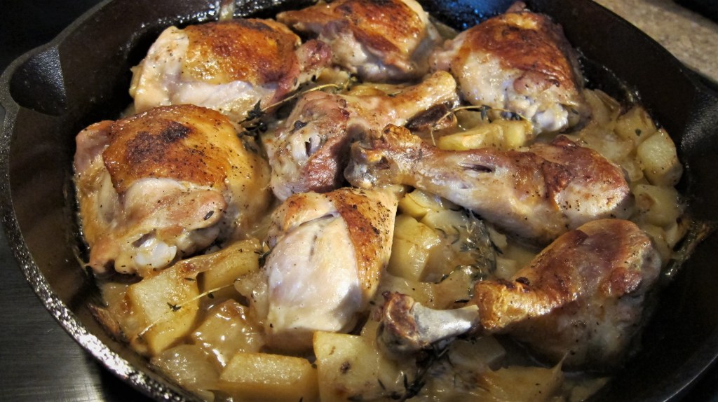 There is absolutely nothing that comes as close to comfort food as chicken and potatoes. My mother would bake some form of chicken with potatoes at least two Sundays out of the month. Nothing was more welcomed than a pan of golden chicken with crispy potatoes and bits of caramelized onions, that my father and I would fight for, stuck to the bottom of the pan.