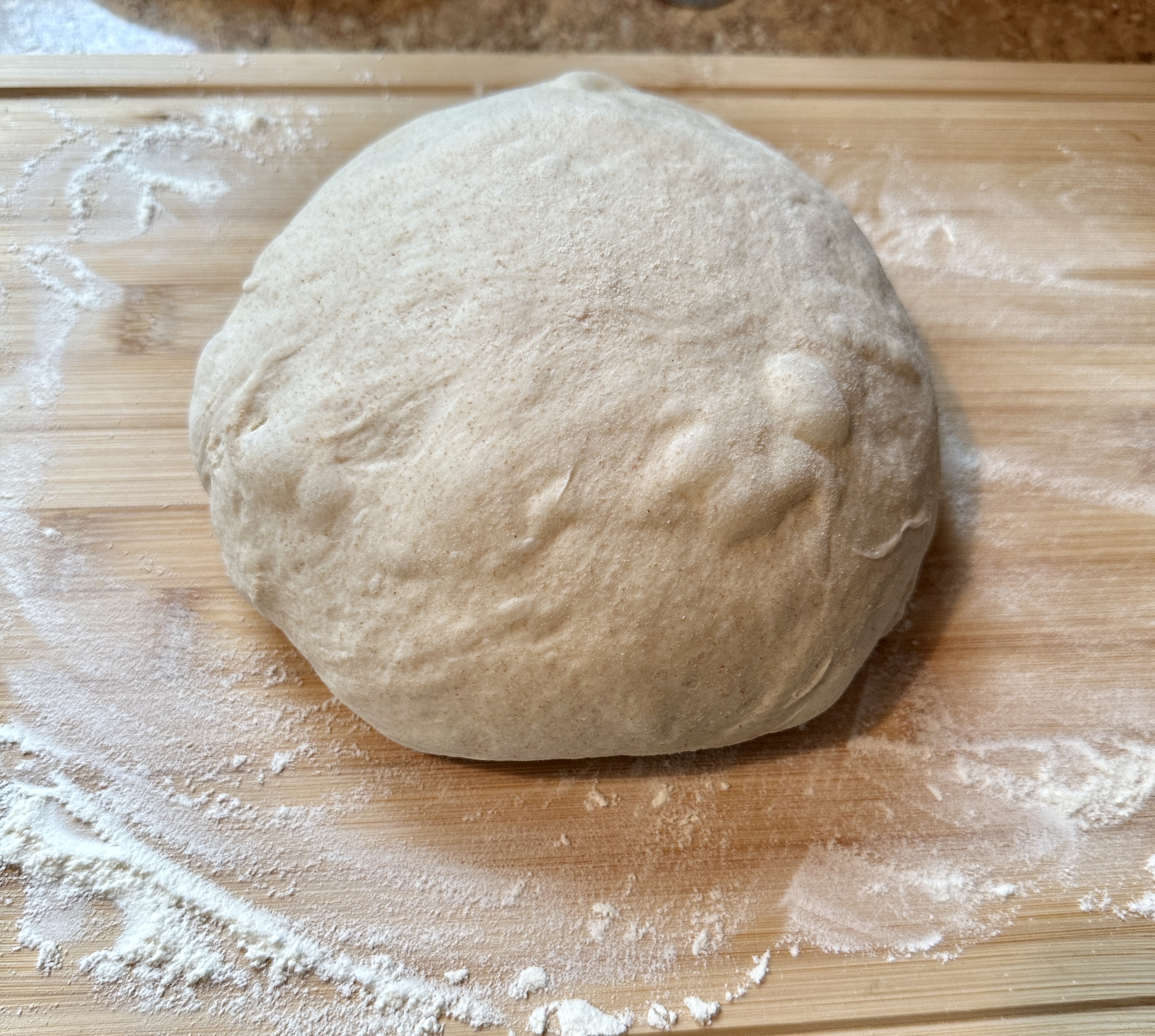 Roll the dough between both your hands, pulling down and under. This will strengthen the dough. Notice the air pockets already developed in the dough.