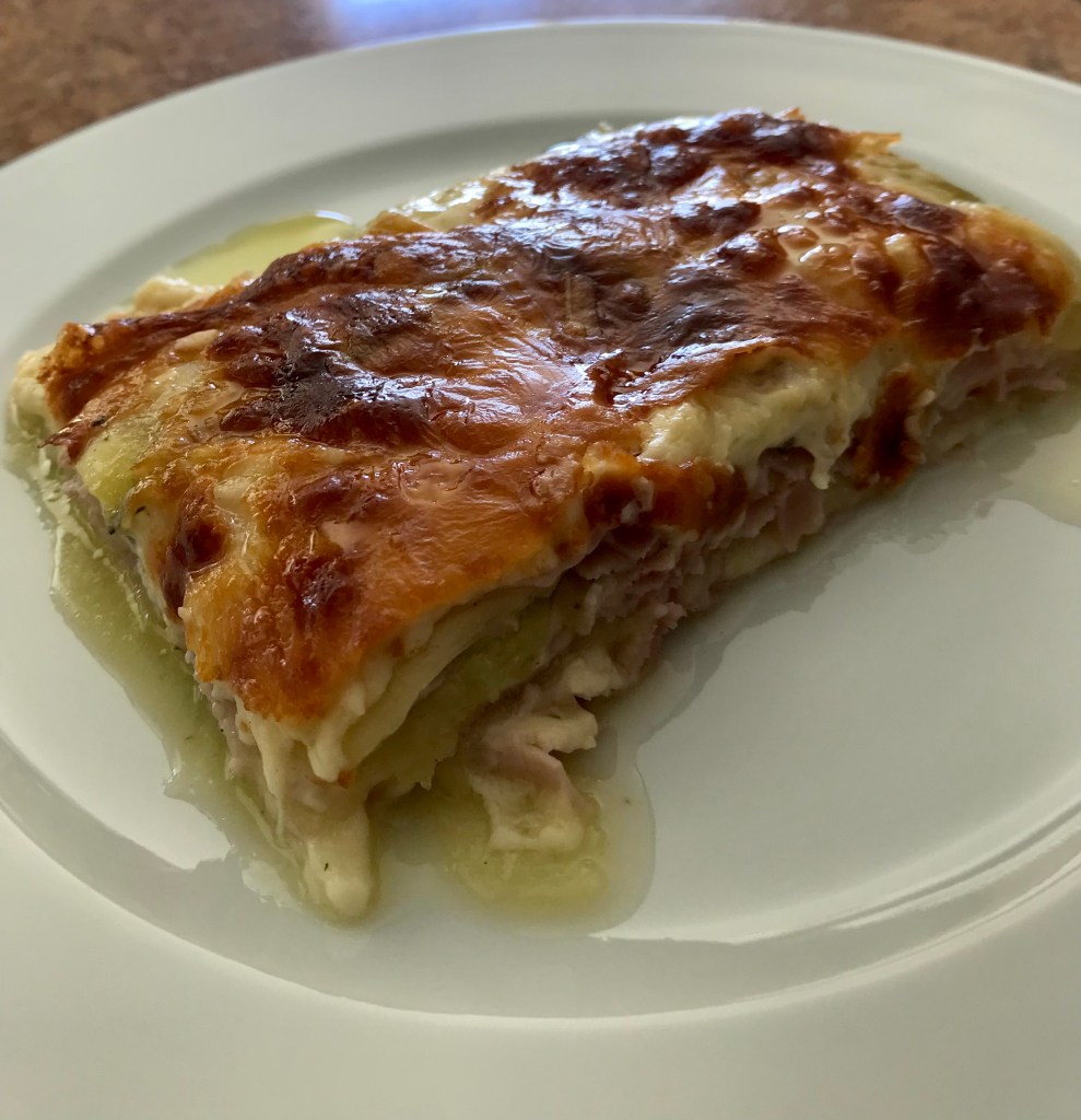 Grandma Isabella would make this as one of her many side dishes for a family meal or special occasion. But she would egg batter the sliced zucchini and fry it till golden before layering it in this “zucchini lasagna”. I found slicing the zucchini really thin, 1/8″, and layering it raw with the other ingredients works really well and saves a step frying them. I also add slices of cooked ham to the layers to add some protein to the dish so it would even be a perfect main dish with some crispy Italian bread.