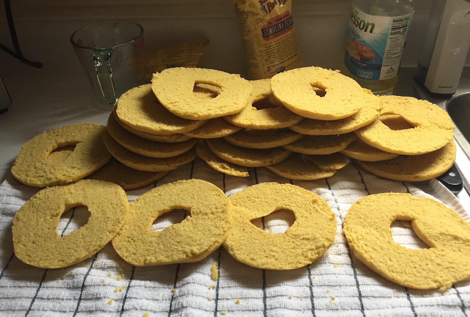 After the little loaves are baked, remove from the oven and slice in half when cool enough to handle. Position back on the cookie sheet. Lower oven temperature to 200 degrees and place back in the oven until the bread is dried. The finished bread should be as dry as a crouton. Cool and store in airtight containers, like a zip lock back. Will keep for months in a cool dark place.
